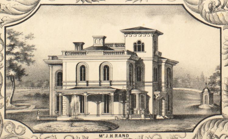 …that which attracts the most attention is the new dwelling house of John Nesmith, Esq., which occupies a fine position on the summit of the hill and commands a view of the entire city and its environs. It is a very beautiful and substantial edifice, the plan of which displays a taste and skill that gives great credit to the Architect, James H. Rand of this city…